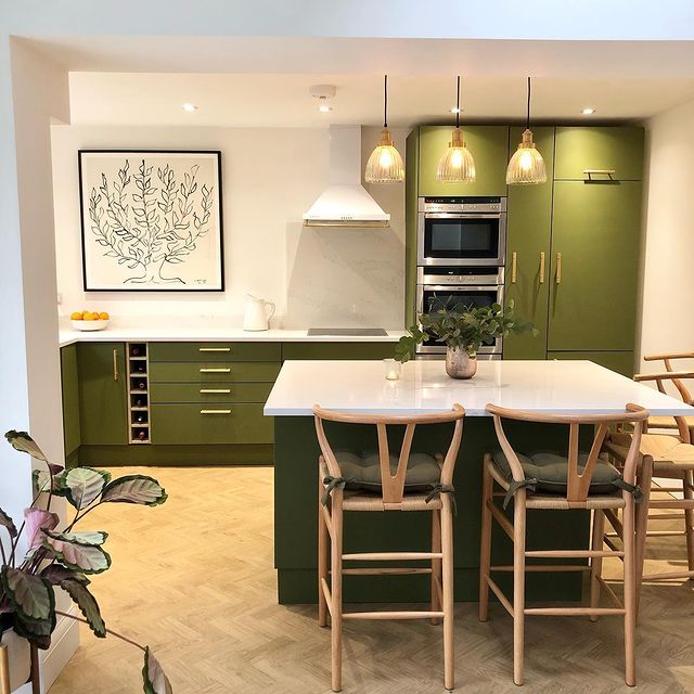 Thank you! I had a really clear idea that I wanted an olive green kitchen with a white worktop.