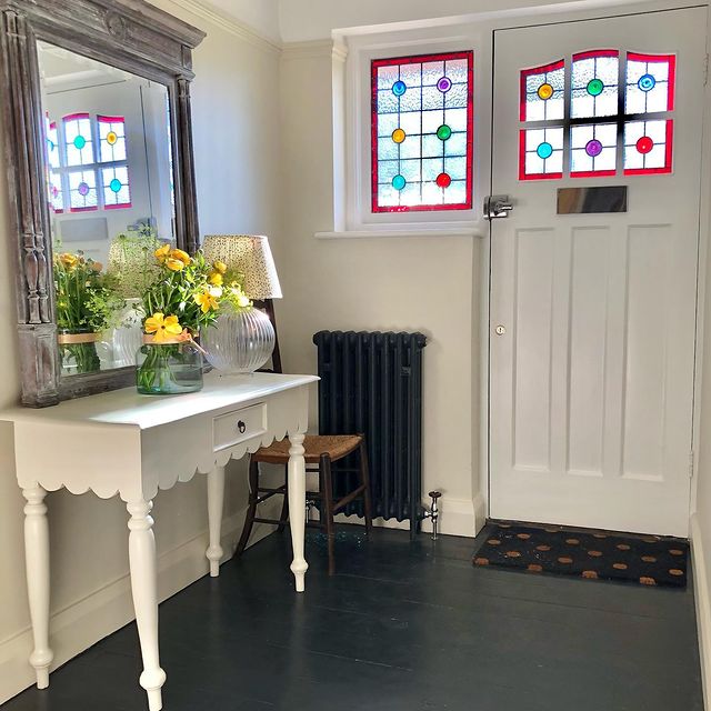 We adore the original front door with the stained glass