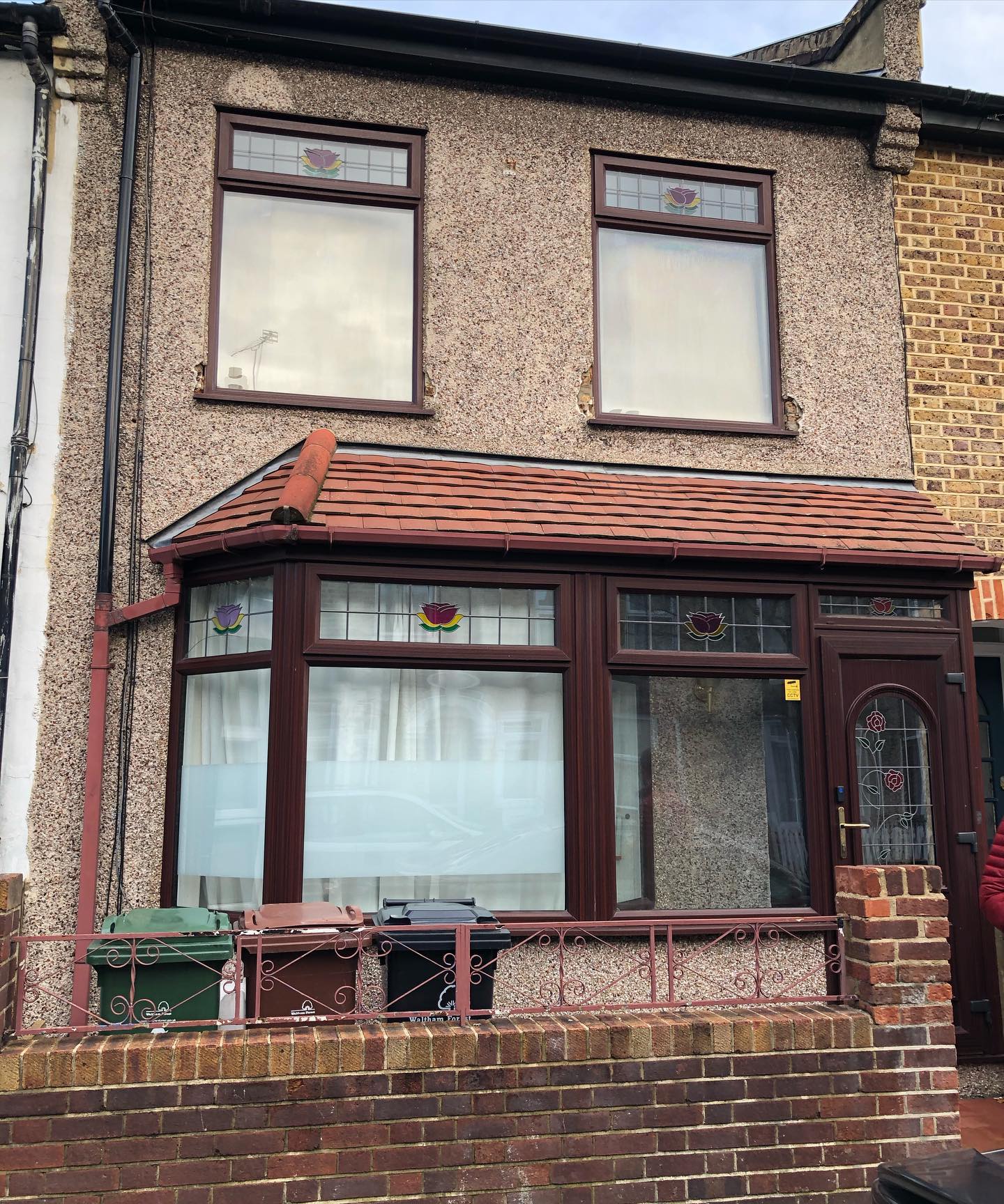 The house was liveable, but definitely needed work. The front had been rendered in pebbledash, and all the windows had been replaced with wood-effect PVC faux-stained glass wonders. A porch had been built over the top of the bay window too.