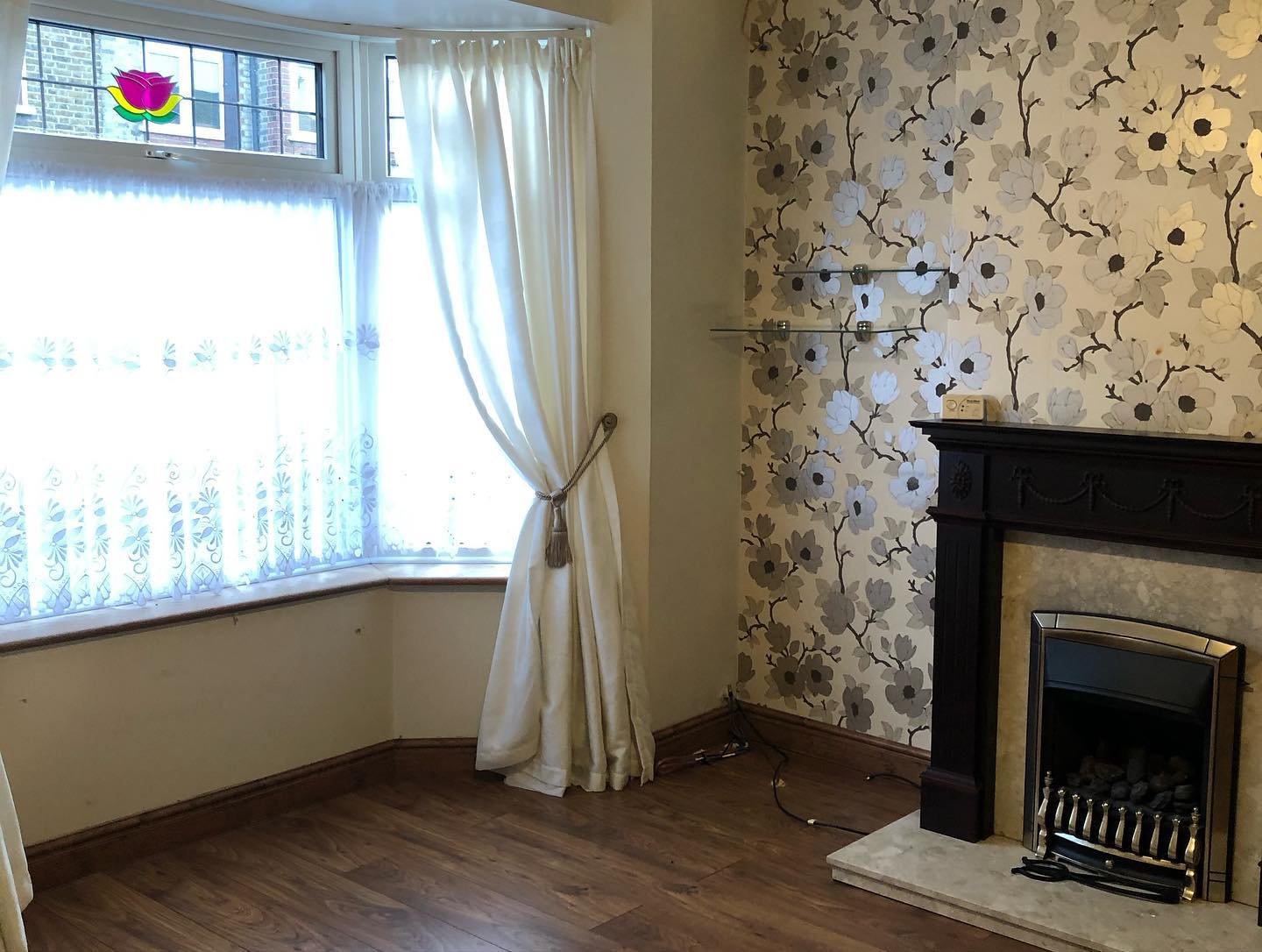 The first room we tackled was the front bedroom, turning it back into one master bedroom by taking down the stud partition wall, and stripping off layers and layers of wallpaper – not to mention the polystyrene covered ceiling. We also stripped all the wallpaper in the living room, redecorated and built our own stud walls around the front living space to create a separate entrance hallway and living room.