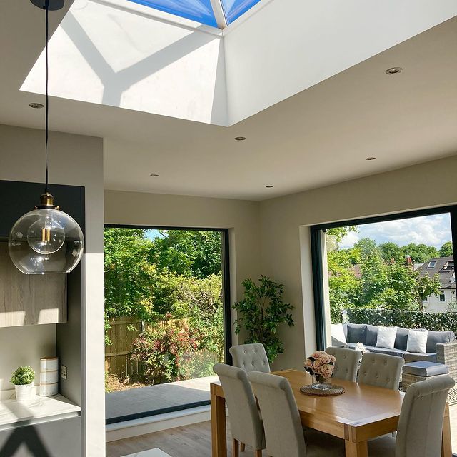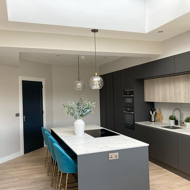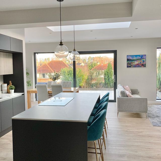 We love the extension from Insta account @SouthBelfastRenovation, it's a contemporary style with lots of clean lines, a monochrome palette and striking floor to ceiling windows.