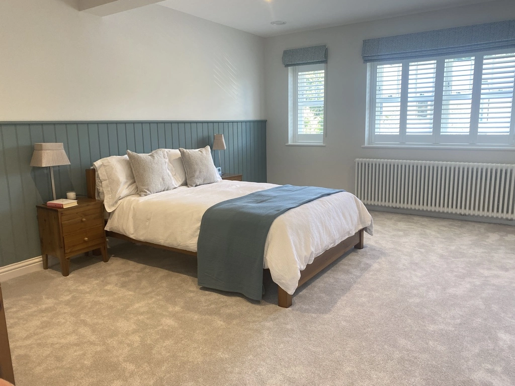 One of the beautiful 4 double bedrooms, with colours that compliment the New England style