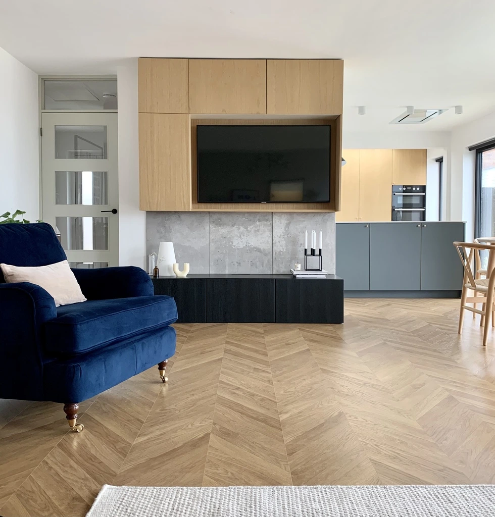 The bungalow extension from Insta account @our_dream_at_no_15 is a beautiful renovation, where the family converted a dated 2 bedroom bungalow to a spacious 4 bedroom home. The rear extension was large and the couple choose to raise the ceiling and have a double aspect height. This gives such a wonderful feeling of space, something that the original bungalow lacked.
