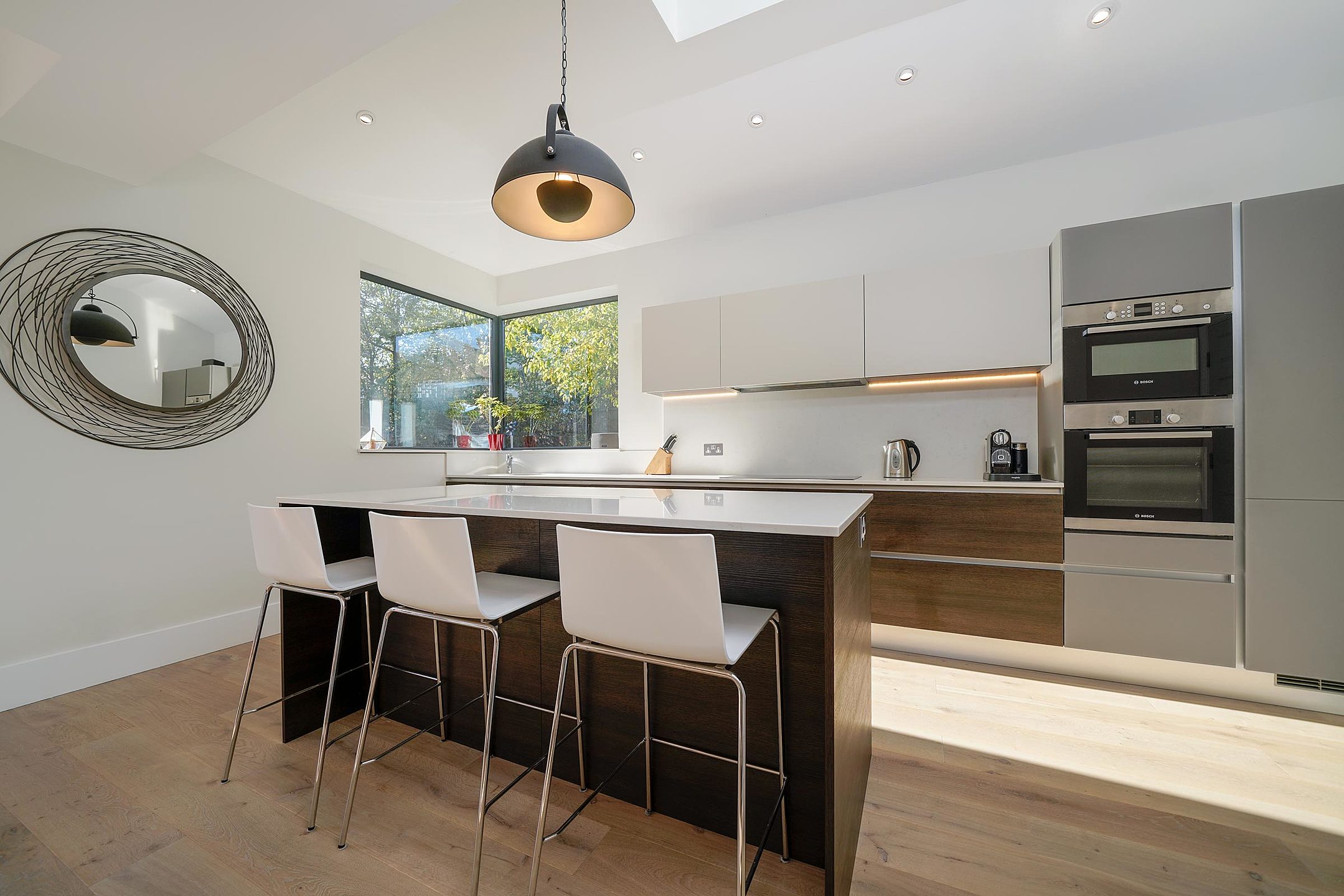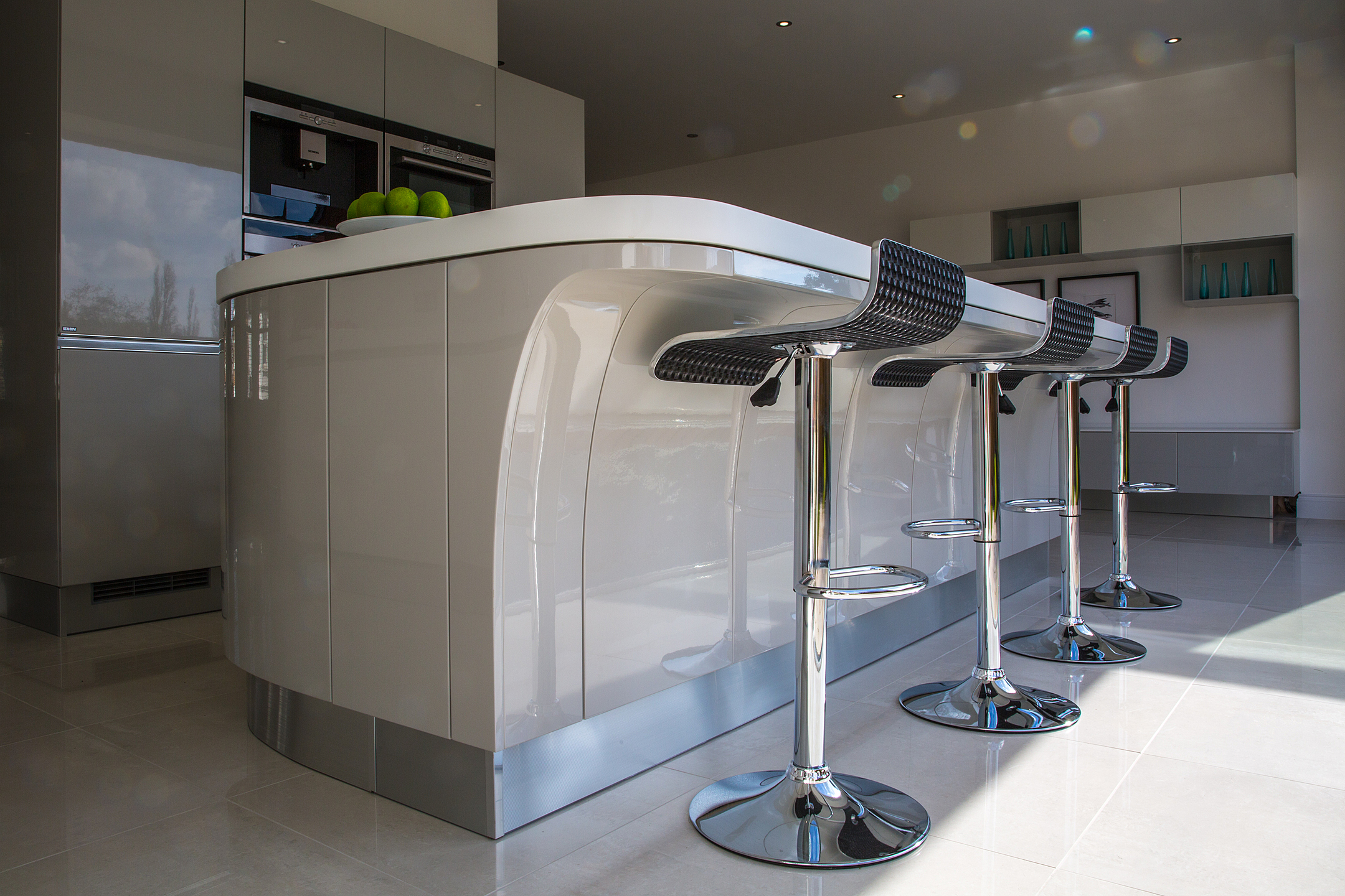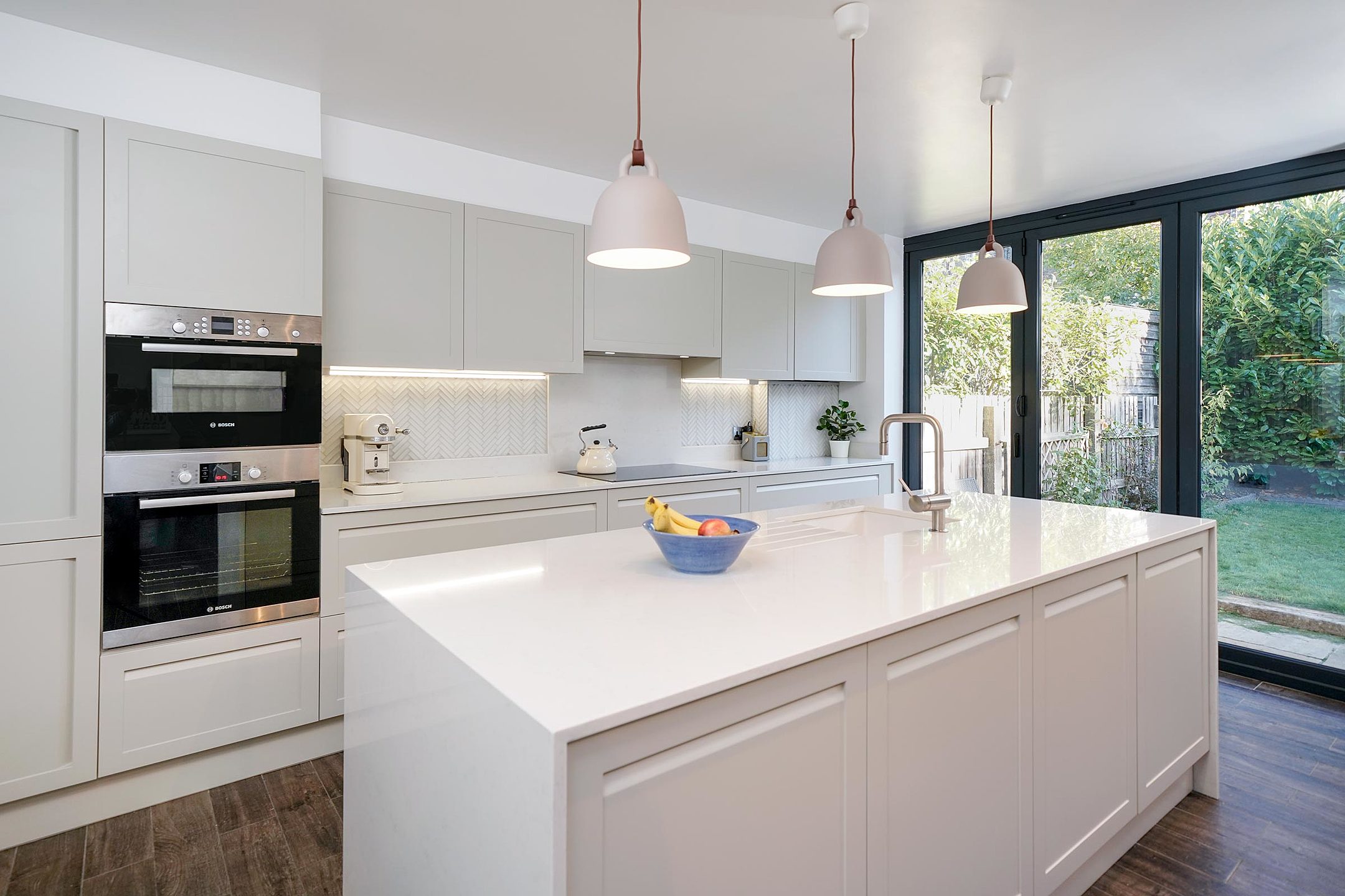 Our worksurface choices include quartz, granite and Corian and we supply a range of reliable appliance brands from Smeg, Bosch, Siemens, Falmec & Barazza.
