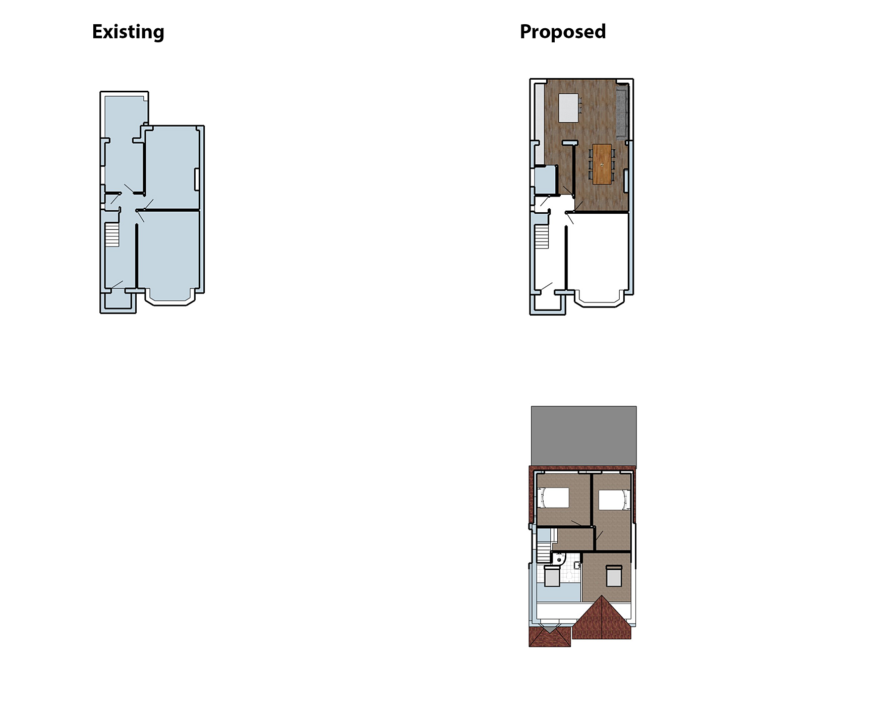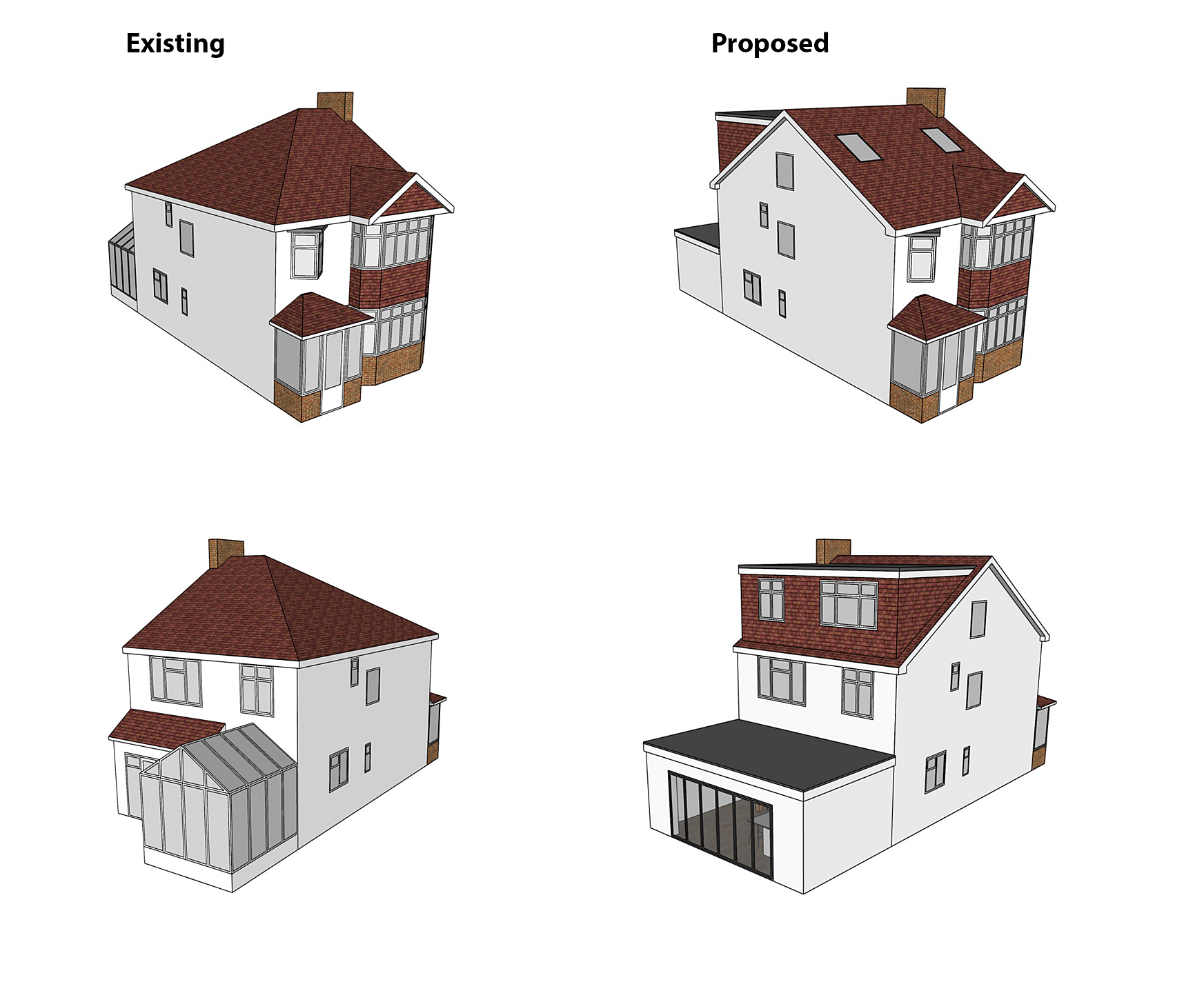 We designed the extension and loft conversion in 3D, so the client could visualise the space, and we managed the planning application and successfully received planning approval from the Council.