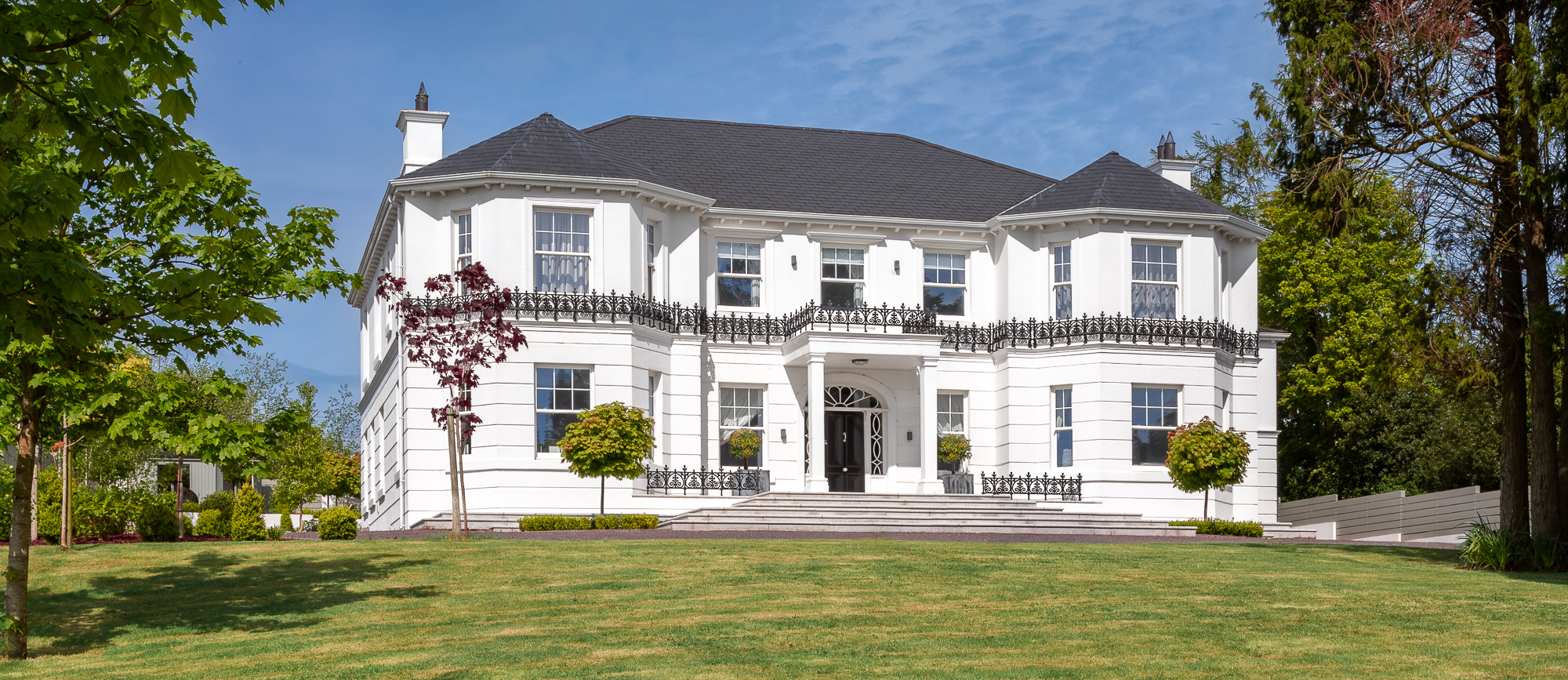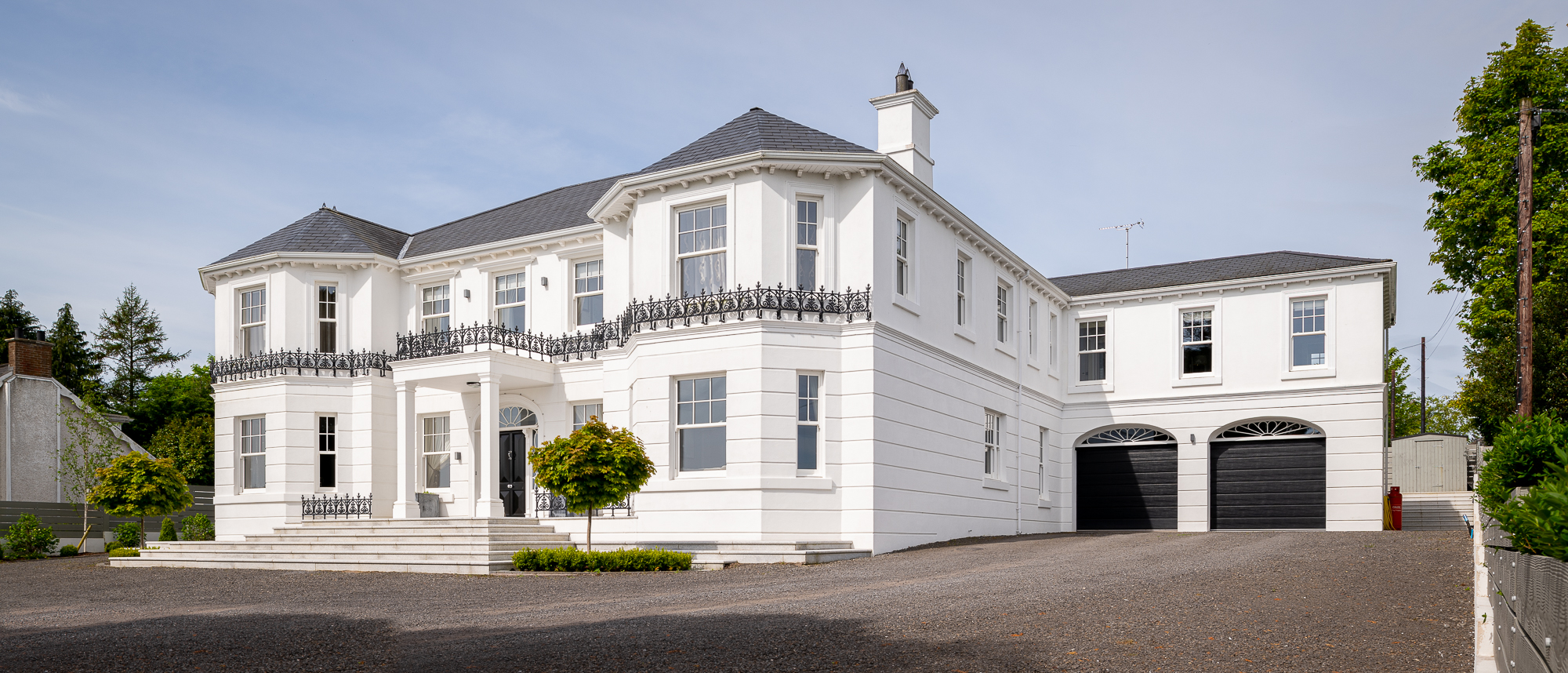 2 storey Georgian style dwelling - 5500 sq ft with 4 bedroom, 4 bathrooms, 3 reception rooms and open plans kitchen/dining, home gym and integrated double garage.