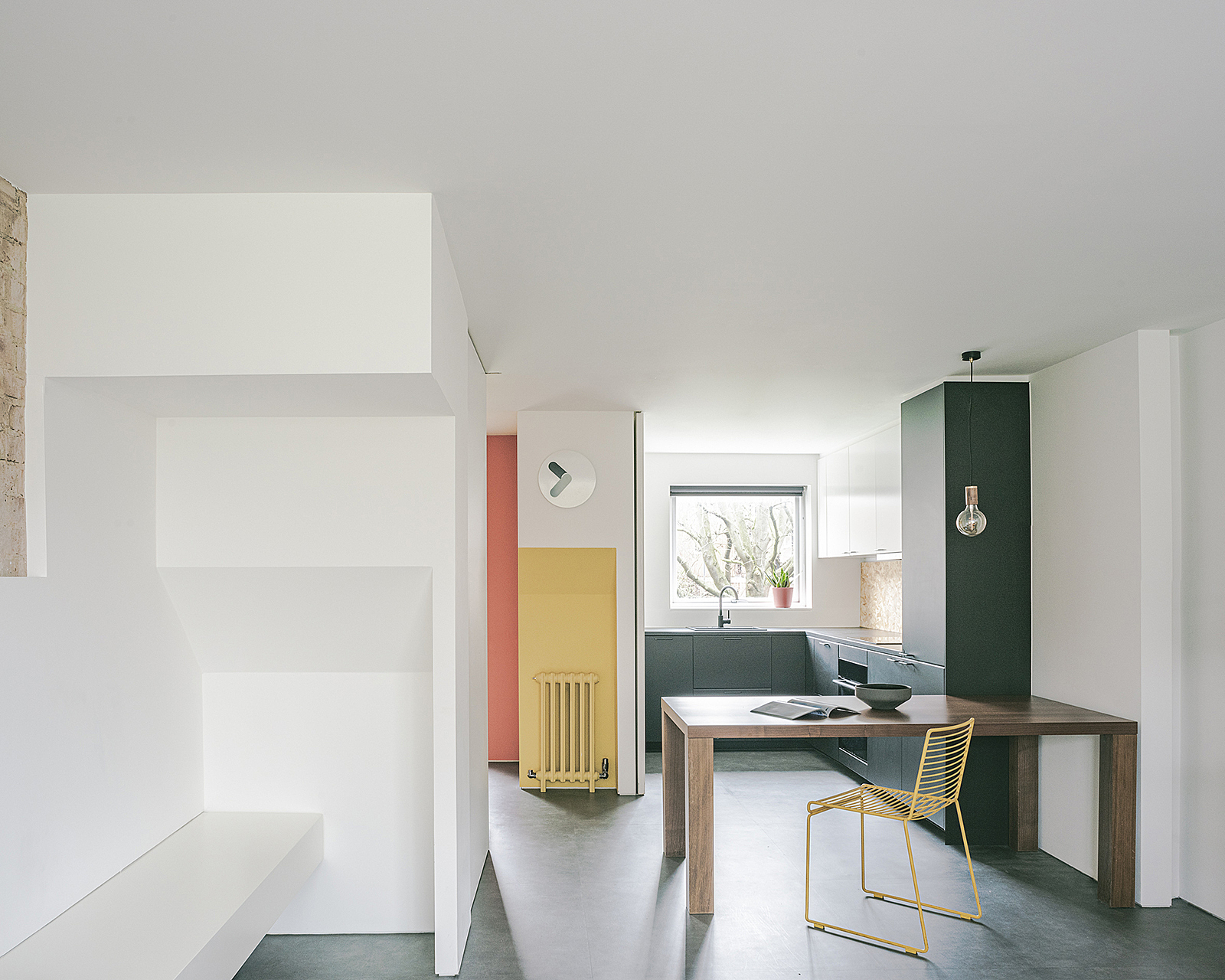 The client wanted to convert the steep roofspace into additional accommodations and to reconfigure the existing house to improve the neglected interiors. The design approach adopts a phenomenological strategy devised to stimulate the bodies of the users when negotiating different spaces, whether ascending or descending. The reconfiguration of the middle floor aims to reduce circulation space in favour of larger bedrooms and service facilities.