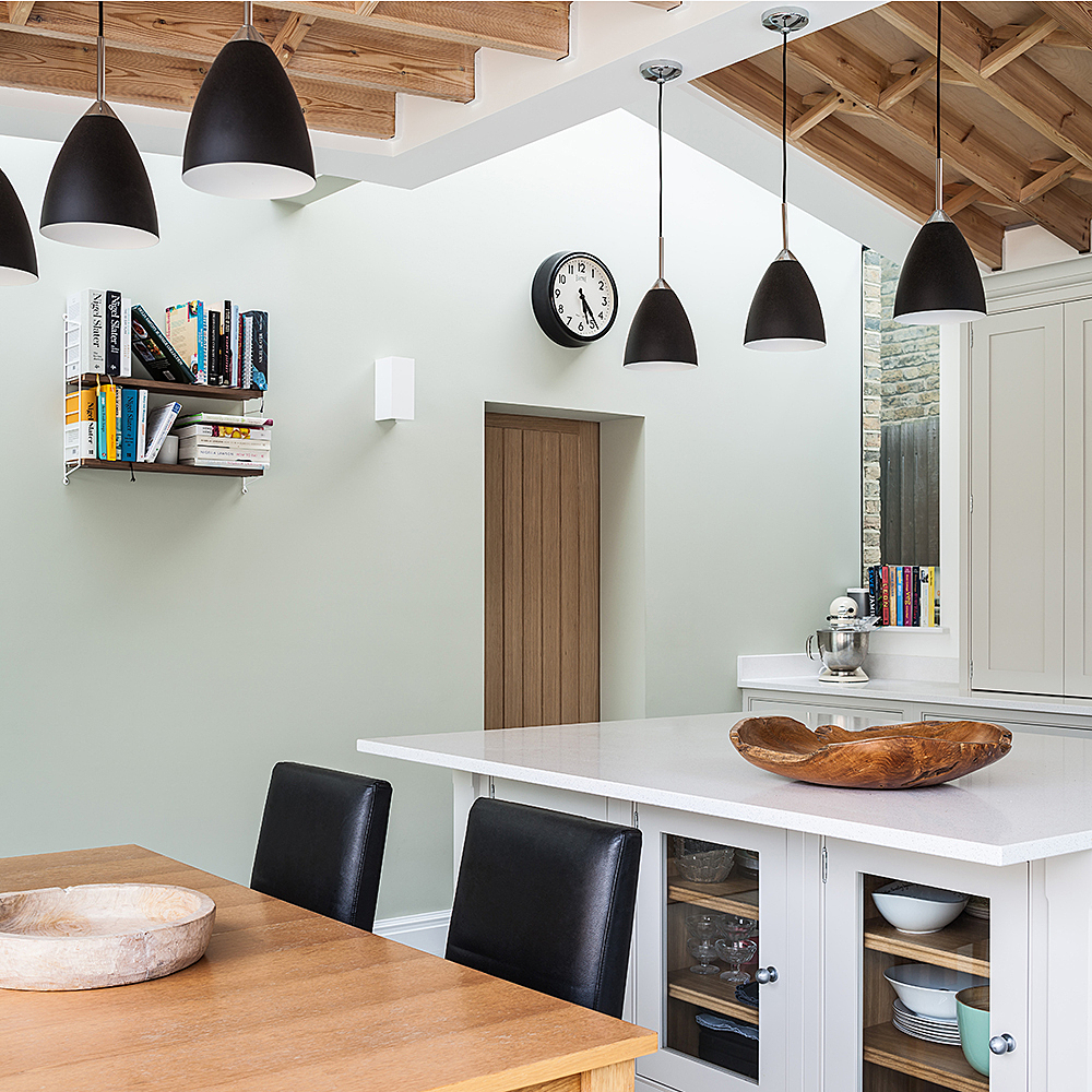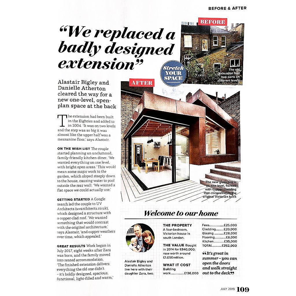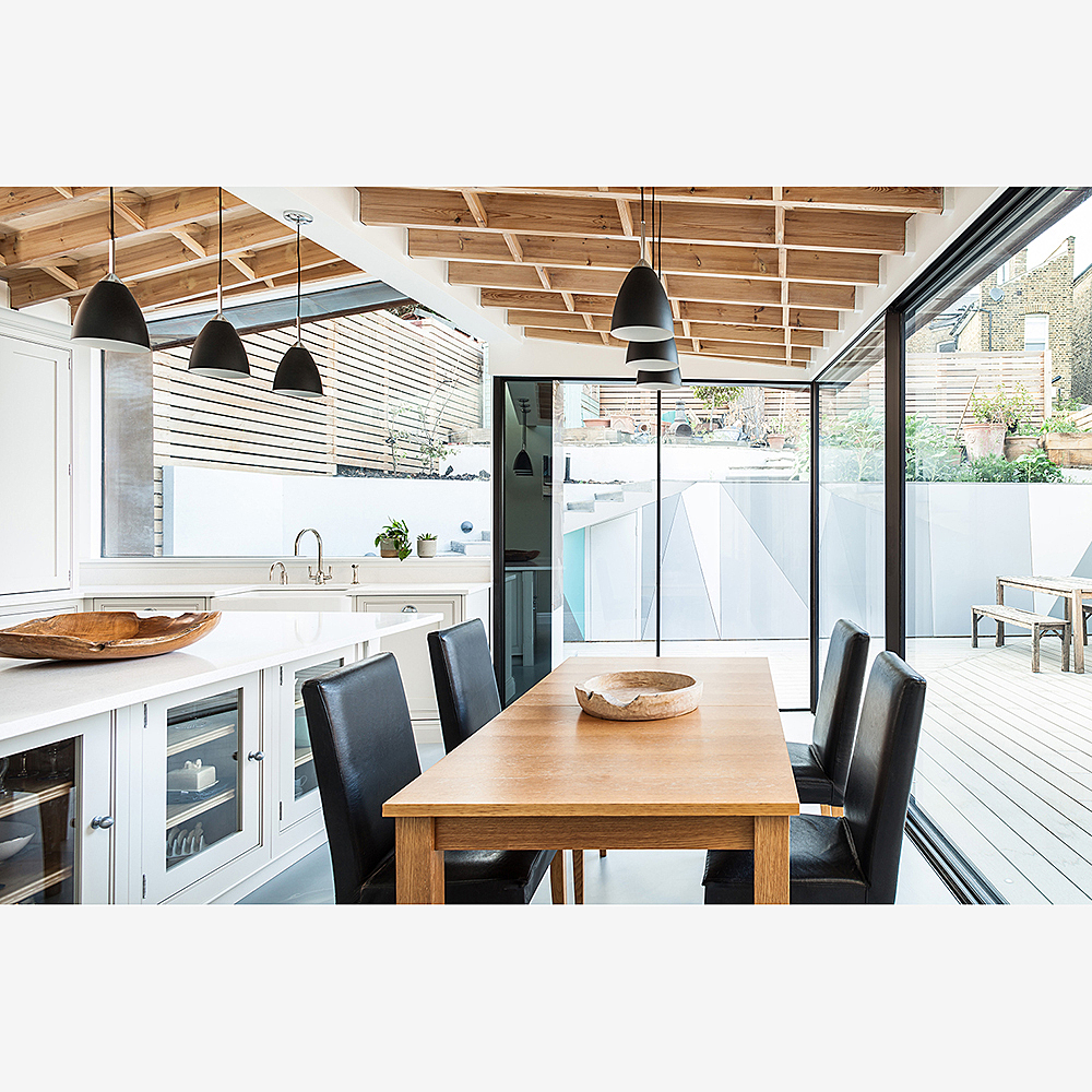 House refurbishment with rear kitchen/ diner extension. An innovative structural design to allow lots of natural light and a great view of a redesigned garden. Open corner sliding doors unifies the dining area and external terrace to make the space feel three times as big, even when the doors are closed Copper cladding provides a durable, beautiful finish that ages gracefully complimenting the traditional host building. The project was shortlisted for Don't Move Improve Award 2019