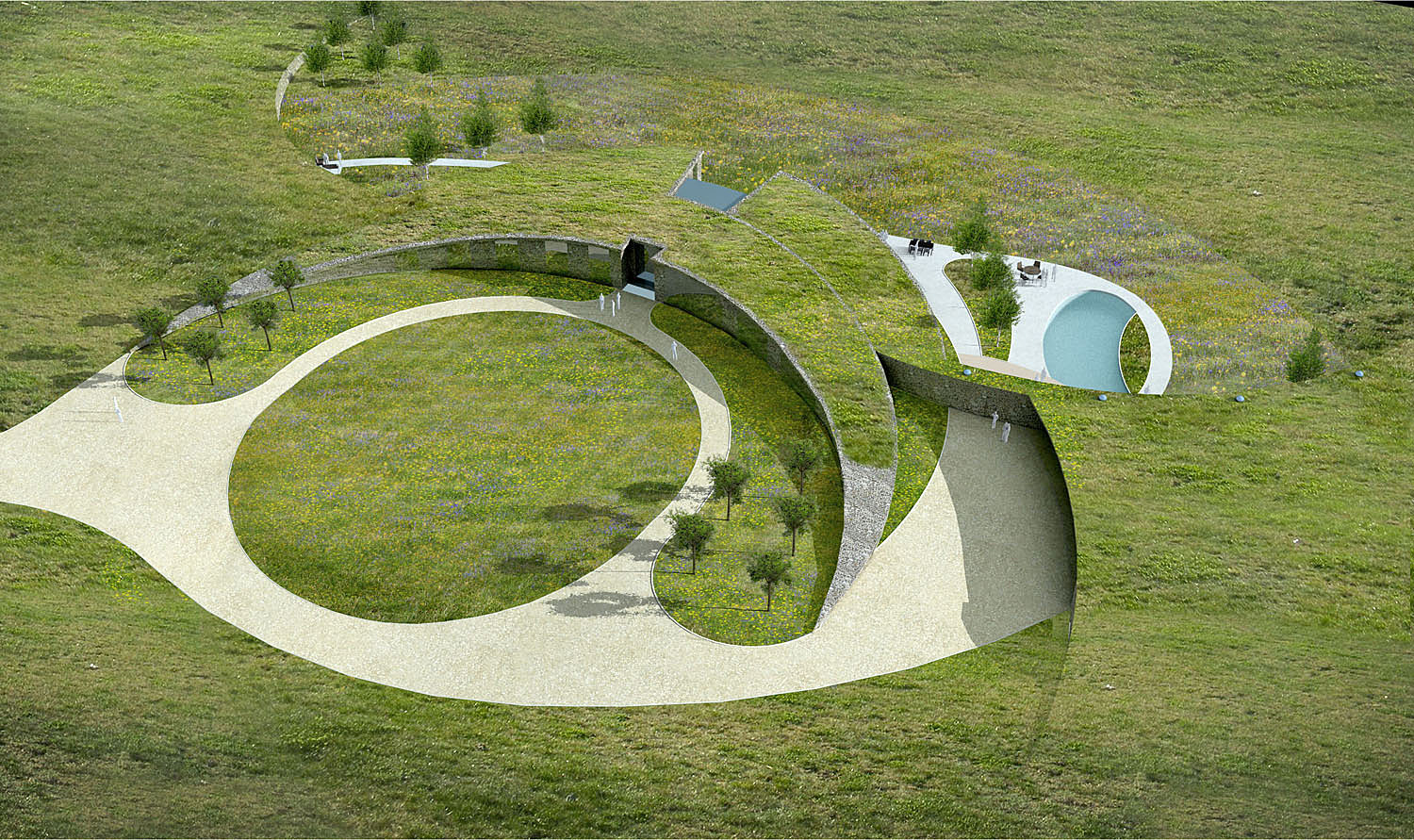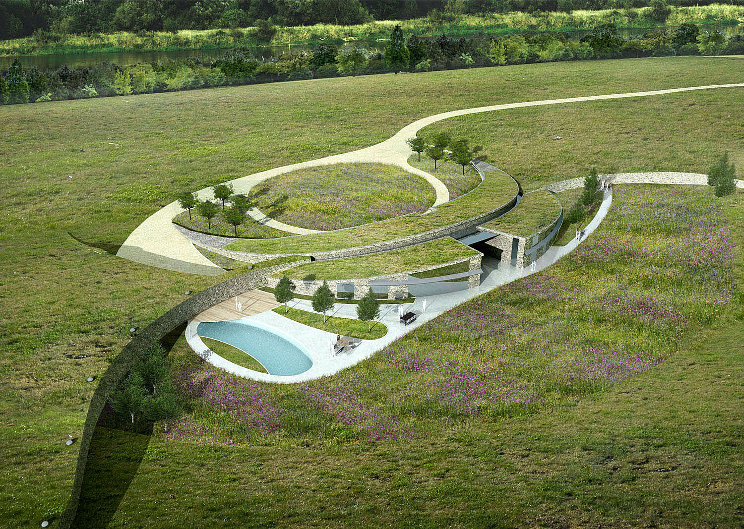 This scheme in rural Hampshire proposes a new rural typology based on organic forms and a holistic approach to sustainability. Reversing traditional principles of opulent design and statements of wealth, we wanted this ‘country home of the future’ to respect, enhance and have minimal impact on the surrounding landscape. Built with local materials, the concept was that this building could be ‘reclaimed’ by the earth. Unbuilt, price is estimated.