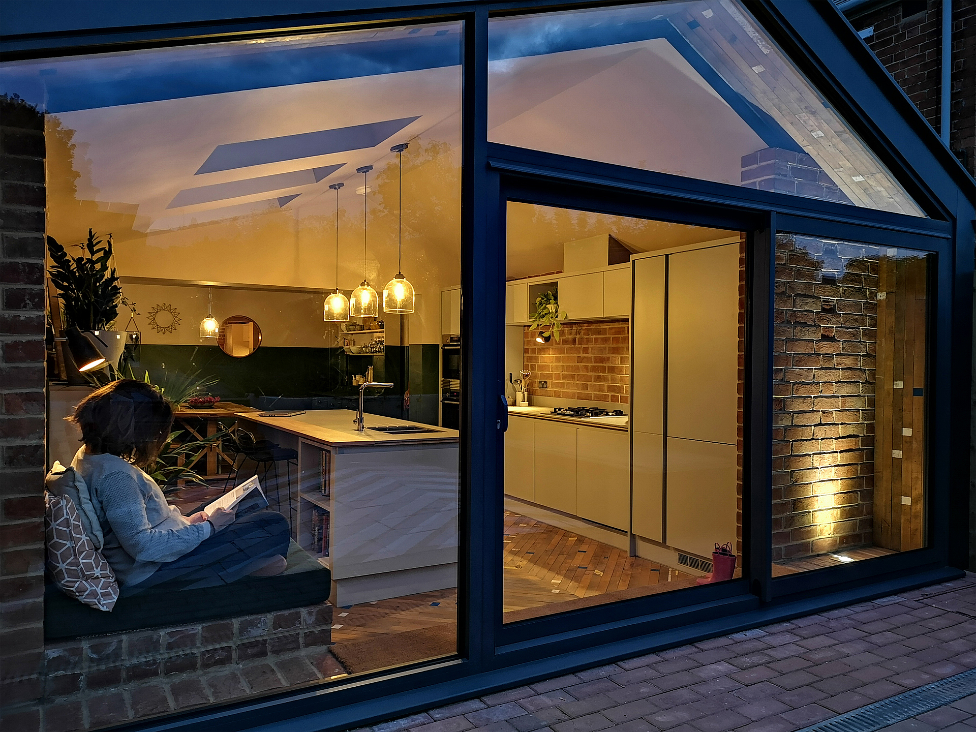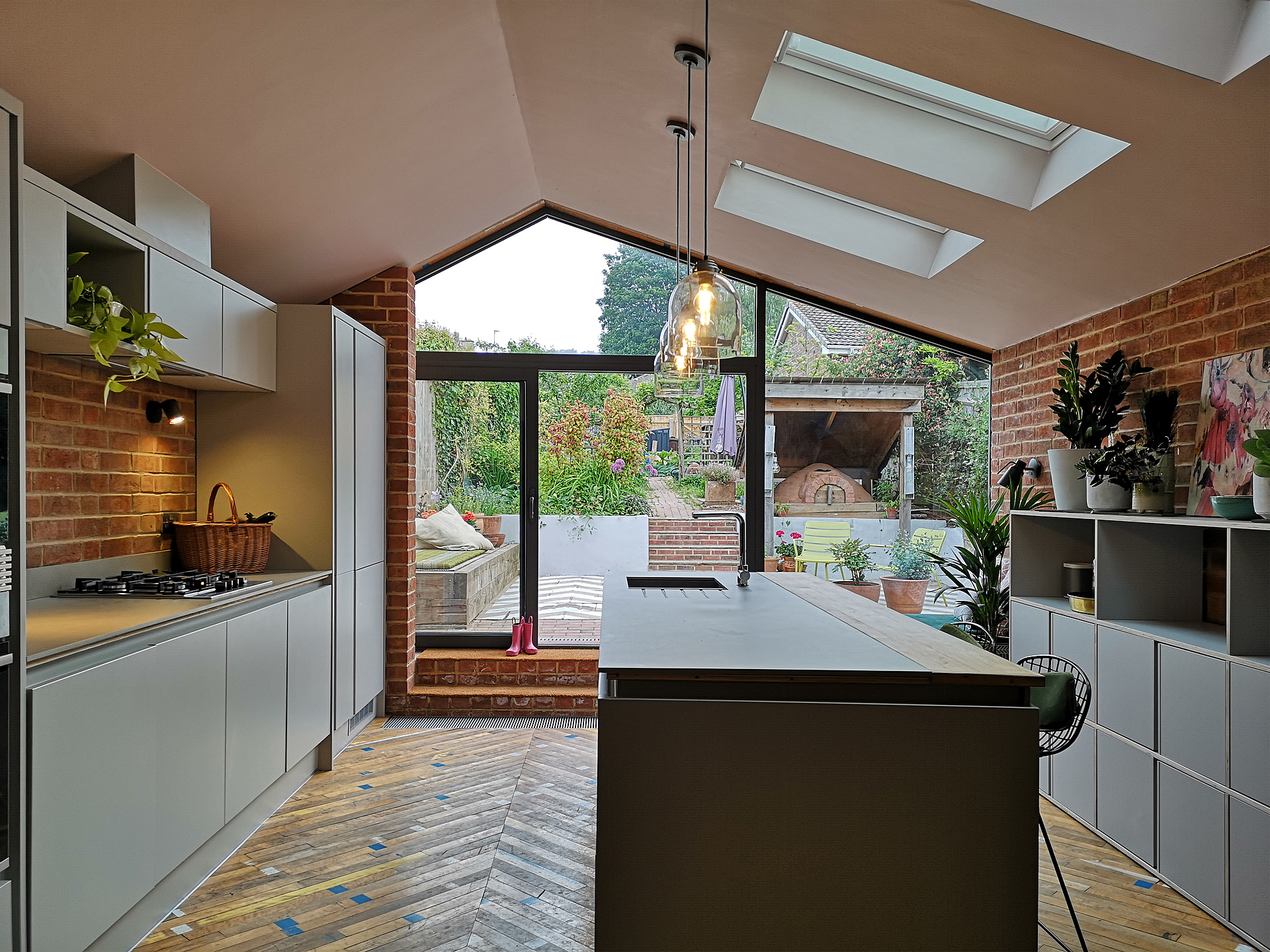 In order to meet the growing requirements of a young family, we worked with the client to design a single storey extension that transformed the internal layout of the ground floor, providing both space and light whilst using existing features to add interest and delight.