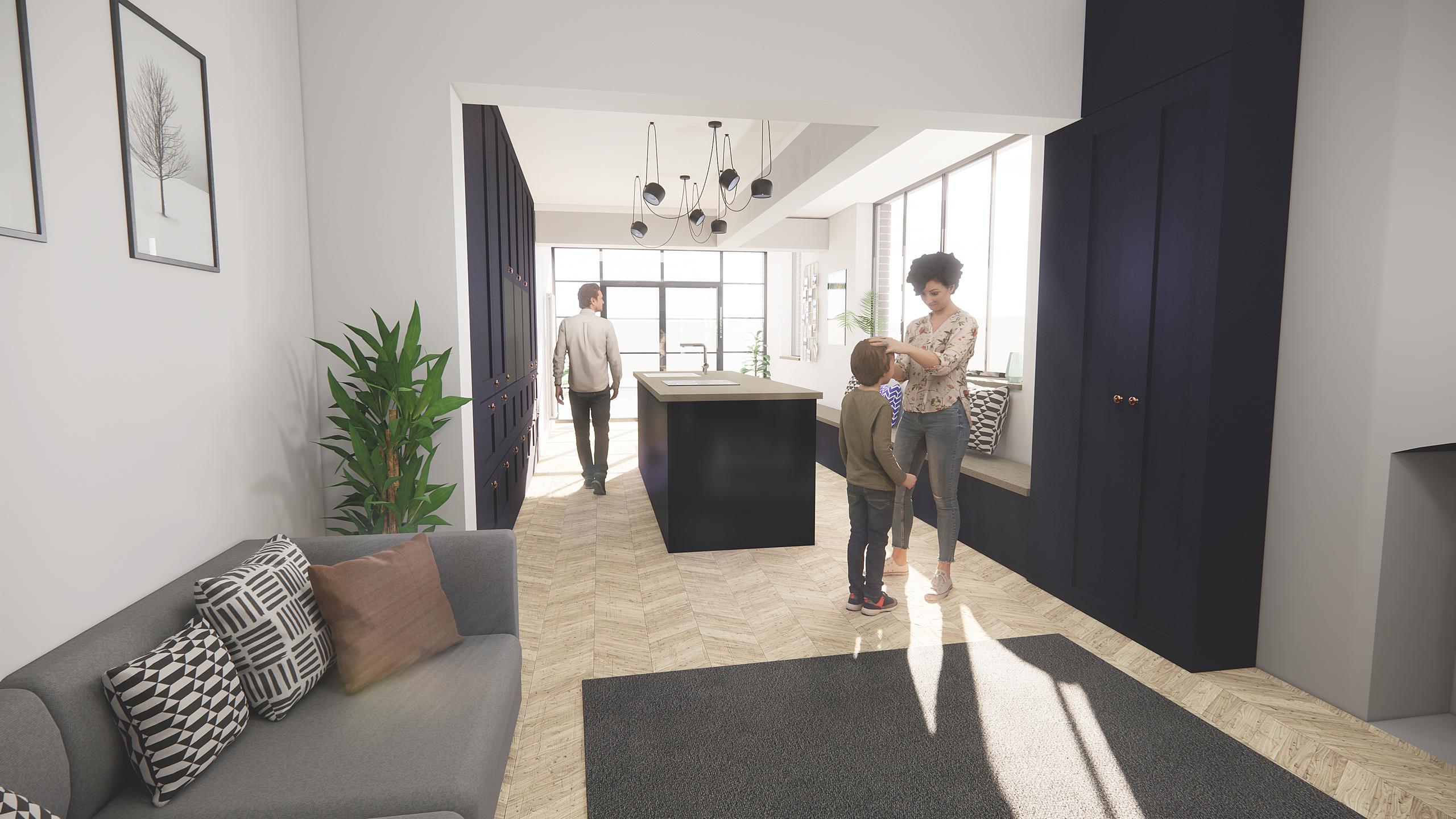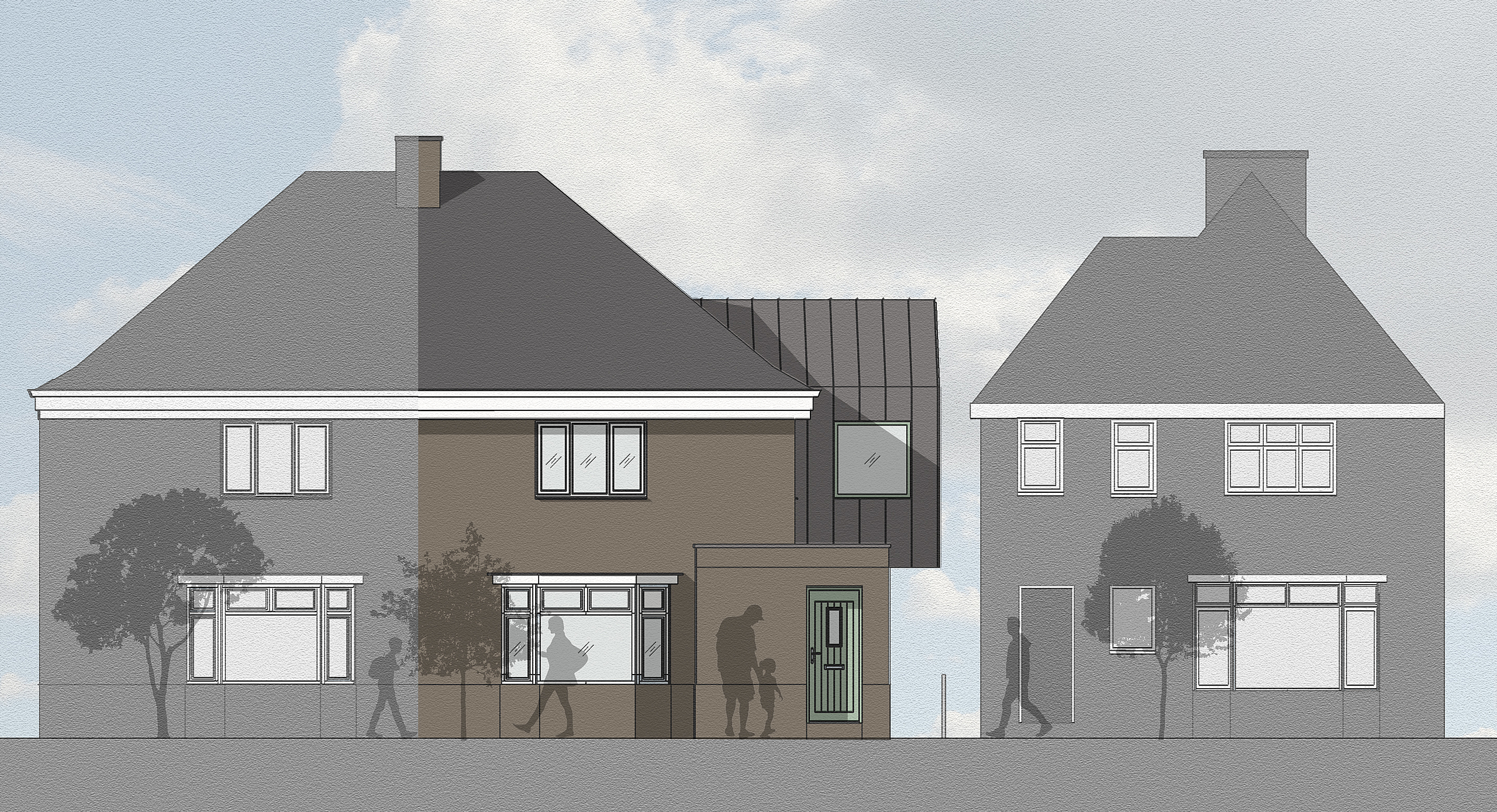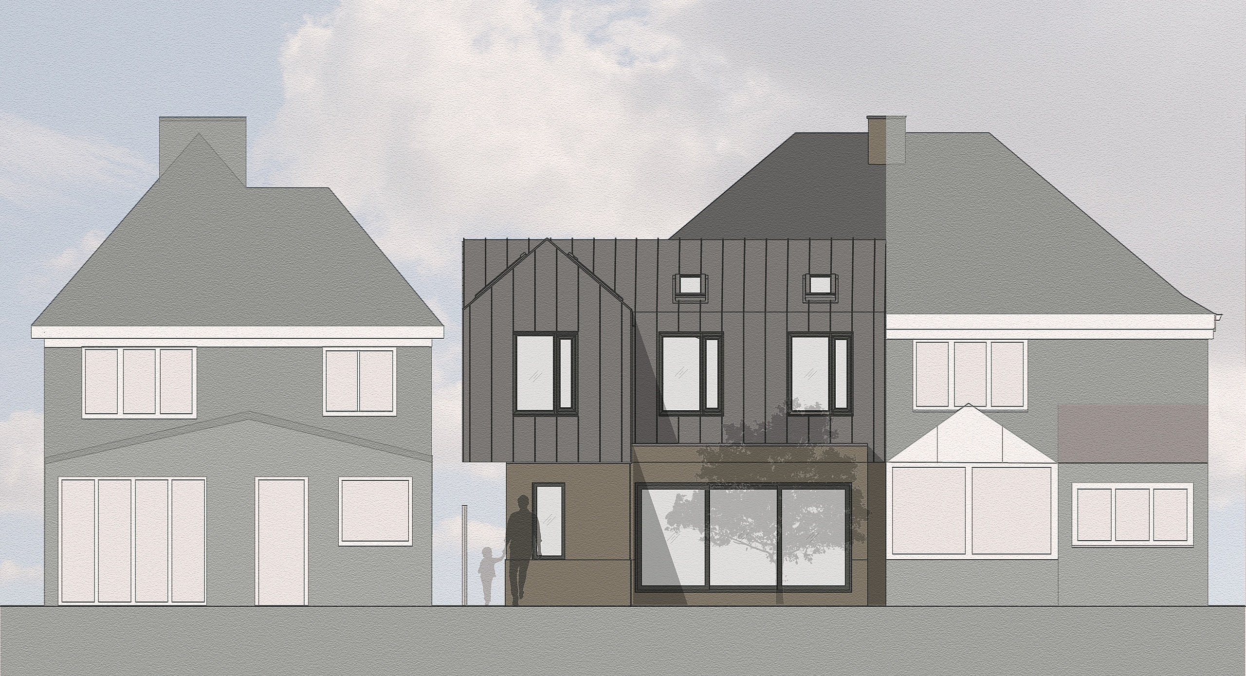 Extension to feature zinc at first floor level to lighten the load whilst using a raw material to reference the industrial heritage of the local area.